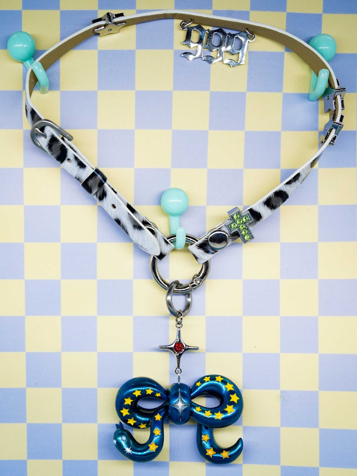 Snake Bowtie galaxy blue necklace and earring with starry design and felt tongue accessory